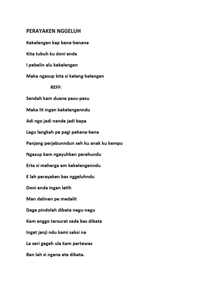 Lirik lagu kekelengen kap bena benana. Kumpulan Teks dan Terjemahan Lagu-lagu Karya Djaga Depari bagian 2 October 27 2011. Bage pe kurang nindu rusur man bangku. Bb F ate mesui ras ate ceda kubaba-baba.